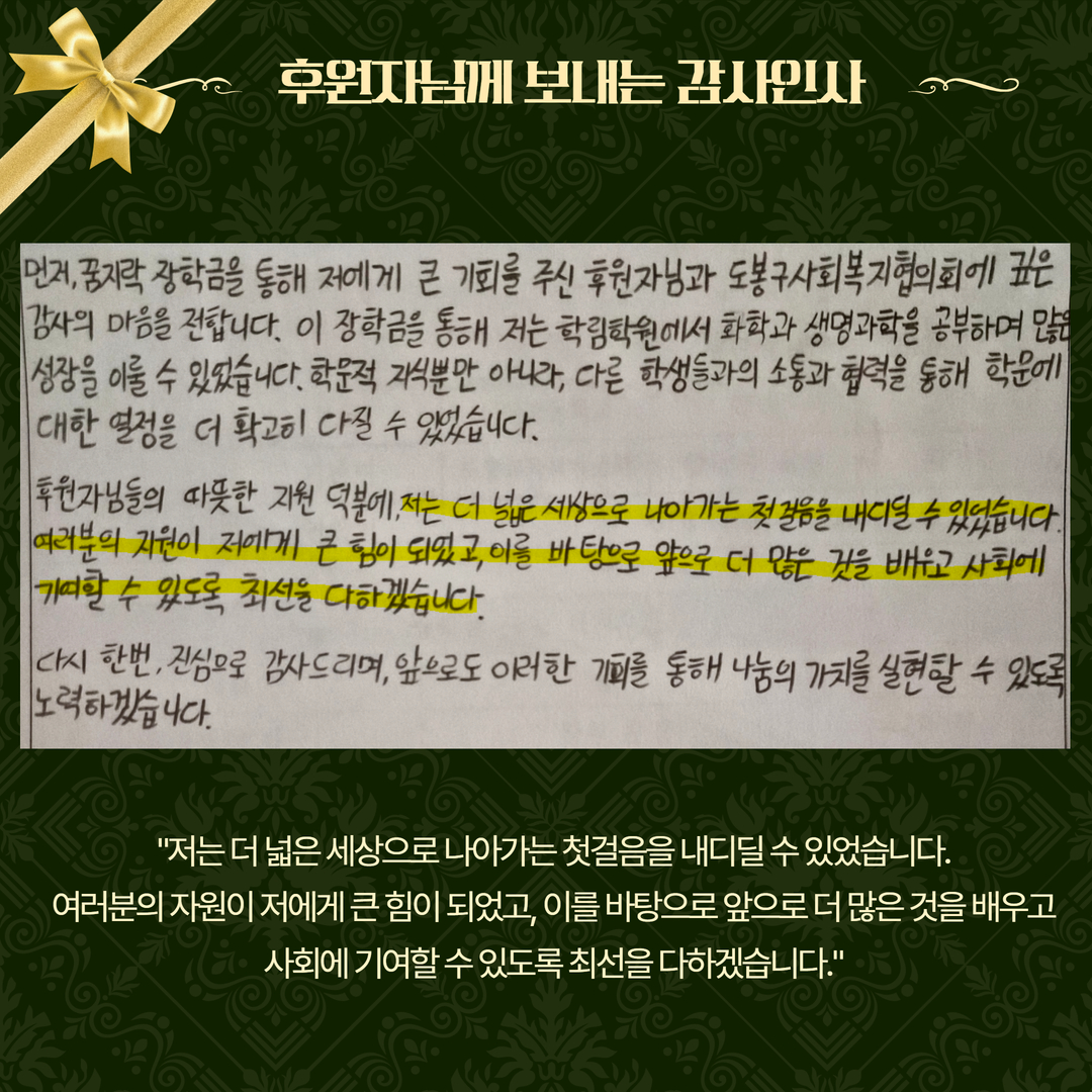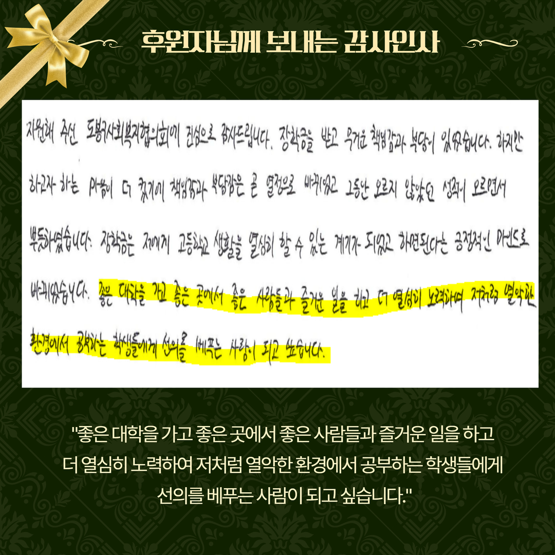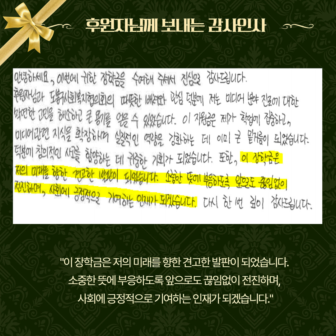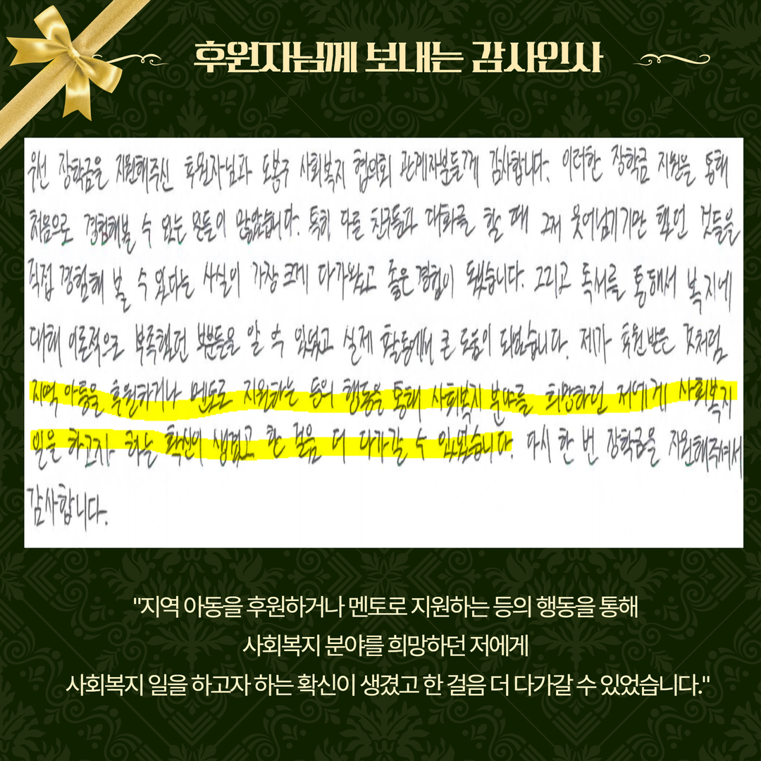2025 도봉 꿈지락 장학금 후원자 감사인사
